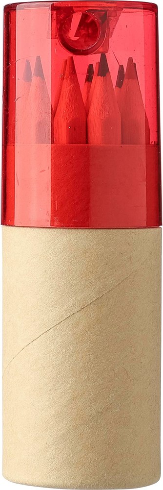 Buntstiftset im Pappköcher, 12-tlg. mit Anspitzer im Kunststoffdeckel.