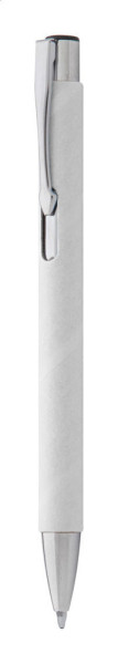 Kugelschreiber aus recyceltem Papier mit Metallapplikationen. Mine blauschreibend.
