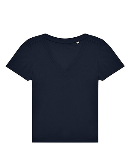 100% einlaufvorbehandelte, ringgesponnene Baumwolle | Single-Jersey | Klassische moderne Passform | Mit Seitennaht | Femininer Ausschnitt mit verstärktem V | Nackenband für sauberen Abschluss | Vorverlegte Schulternähte | Kein Label | Widerstandsfähiges Material mit weichem Griff