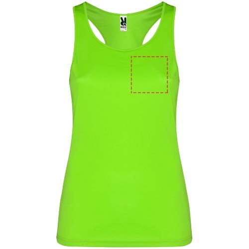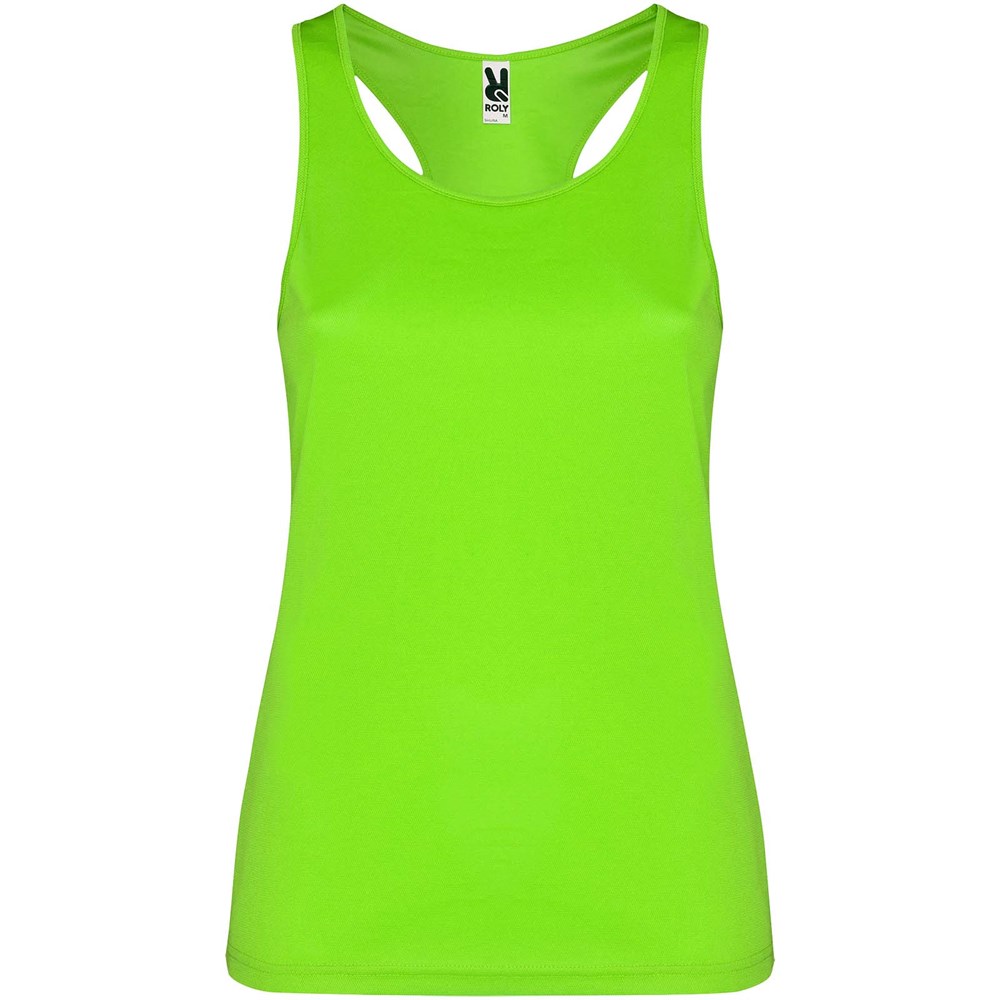 Funktionsstoff, atmungsaktiv, leicht zu waschen und zu trocknen. Gerippter Arm- und Halsausschnitt. Racerback und Seitennähte. Abnehmbares Etikett.
