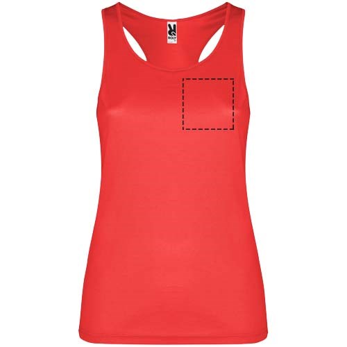 Funktionsstoff, atmungsaktiv, leicht zu waschen und zu trocknen. Gerippter Arm- und Halsausschnitt. Racerback und Seitennähte. Abnehmbares Etikett.