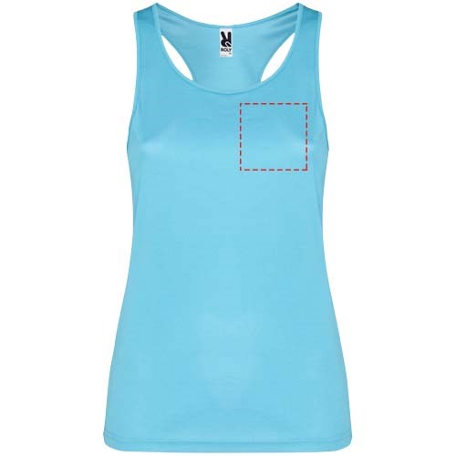 Funktionsstoff, atmungsaktiv, leicht zu waschen und zu trocknen. Gerippter Arm- und Halsausschnitt. Racerback und Seitennähte. Abnehmbares Etikett.