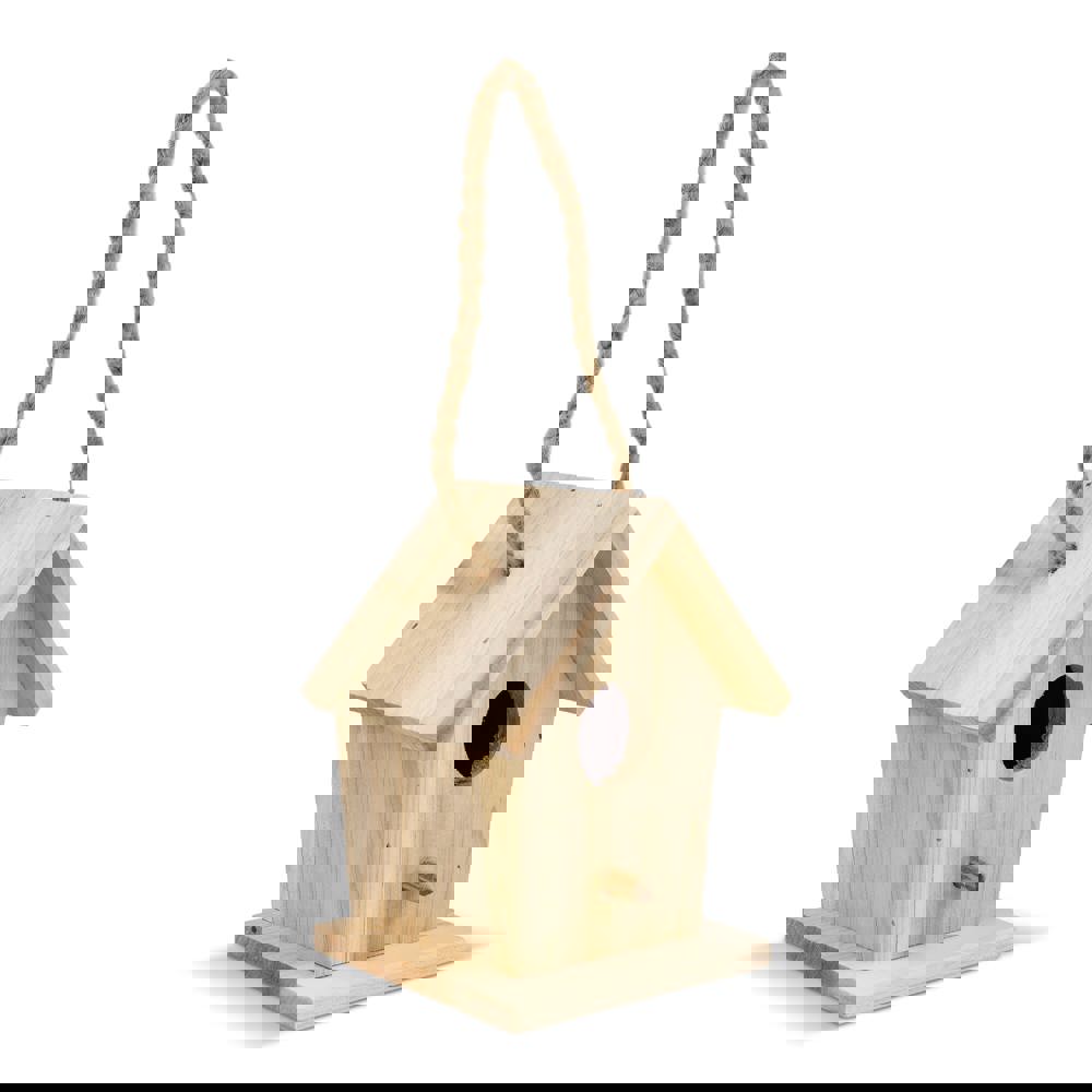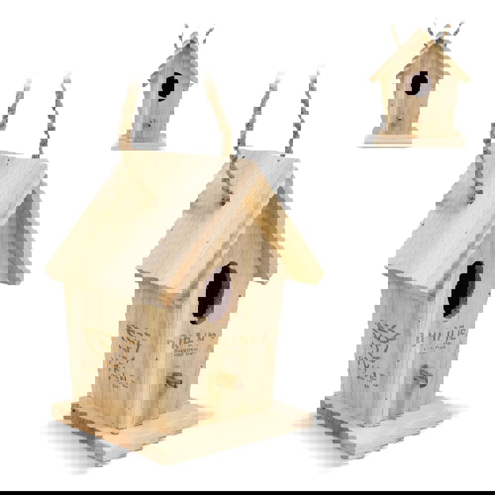 FSC-zertifiziertes Vogelhäuschen aus Holz mit 30 mm Einflugloch, geeignet für kleine Gartenvögel wie Blaumeisen und Kohlmeisen. Fördert die Artenvielfalt und natürliche Schädlingsbekämpfung. Ein nachhaltiges Werbegeschenk für Gärten.