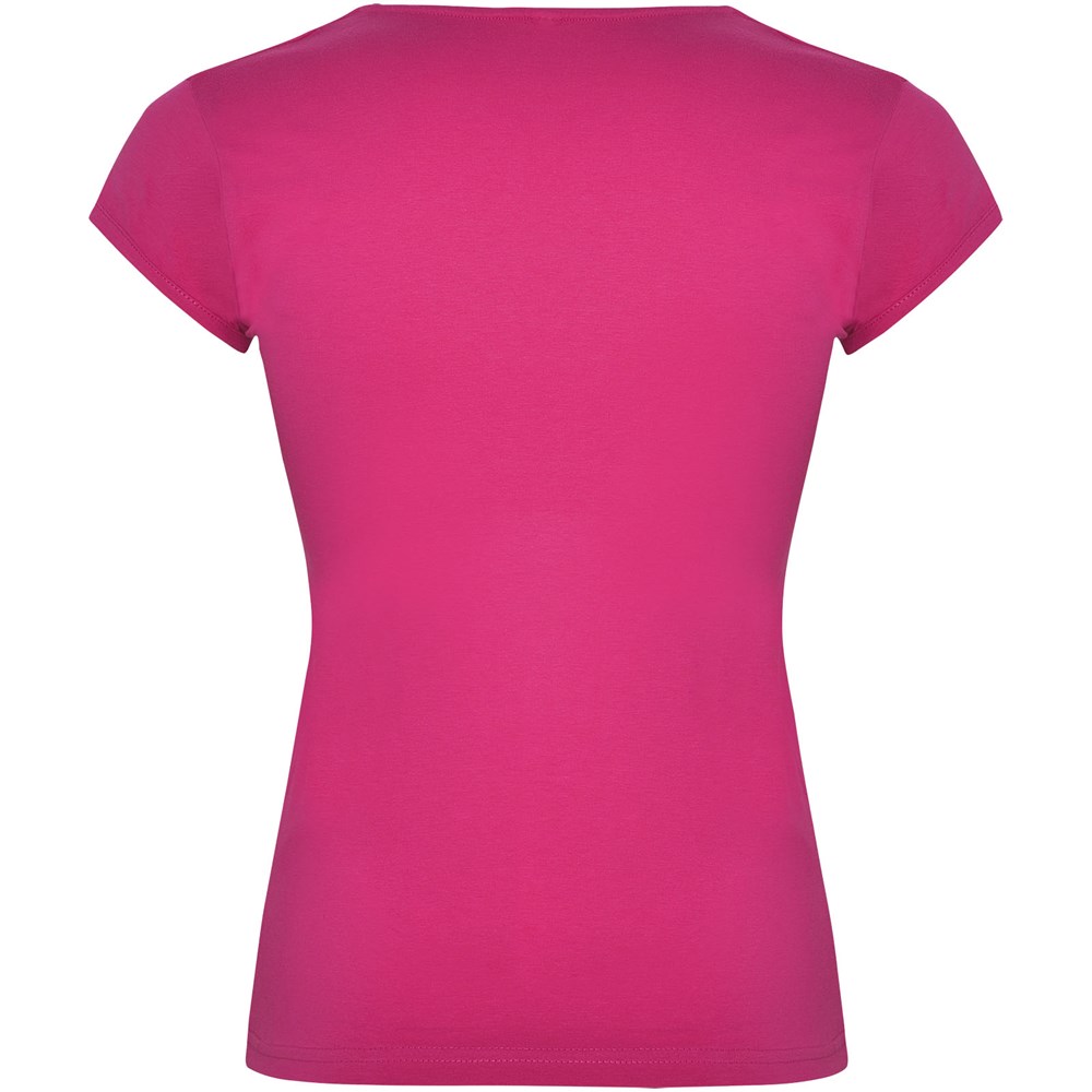 Tailliertes T-Shirt V-Ausschnitt vorne. Halbe Ärmel und Seitennähte. Hochwertiges Material für ein weiches und angenehmes Tragegefühl. Herausnehmbares Etikett. Das Modell ist 179 cm groß und trägt Größe S.