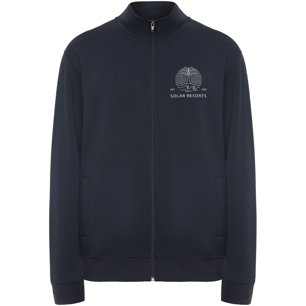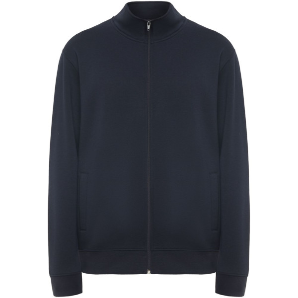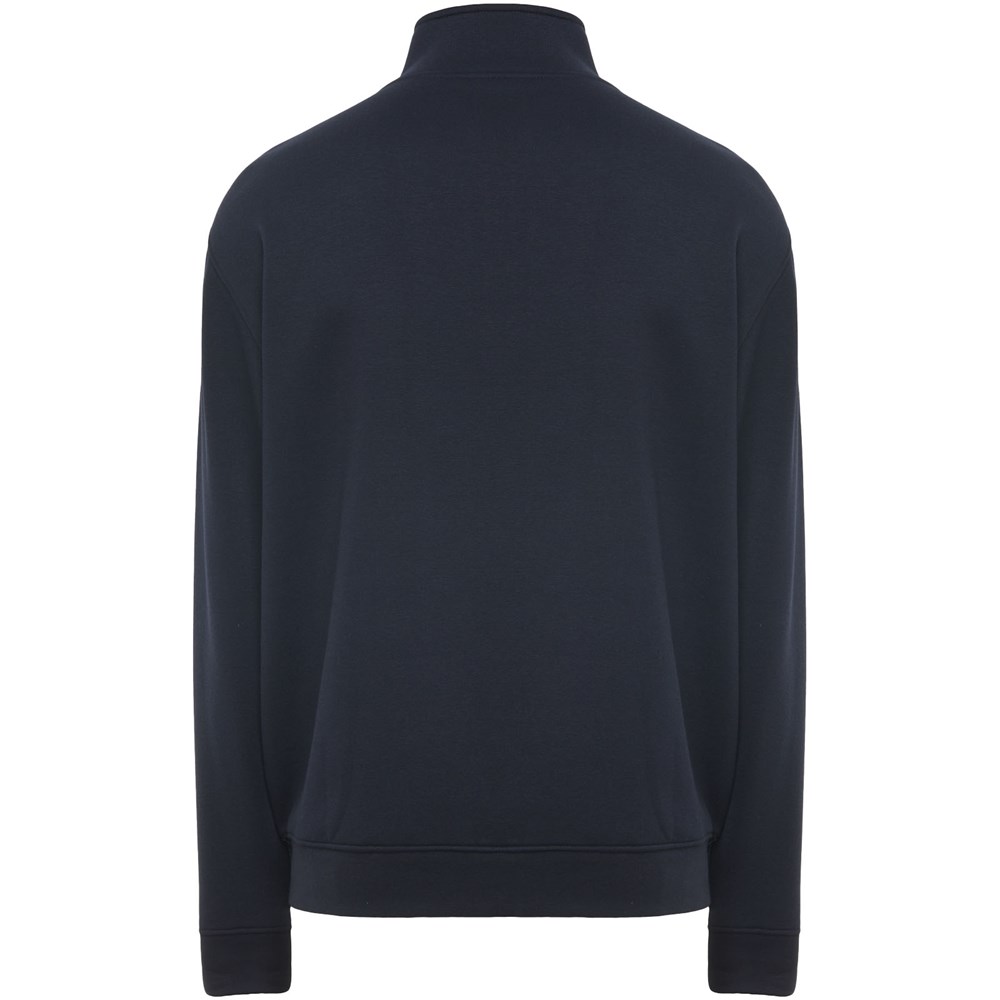 Pullover mit Stehkragen und passendem Reißverschluss. Passender Innenkragen mit verstärkten und verdeckten Nähten. Bündchen und Taille aus 1×1-Rippstrick. Herausnehmbares Etikett. Das männliche Modell ist 185 cm groß und trägt Größe L, das weibliche Modell ist 168 cm groß und trägt Größe S.
