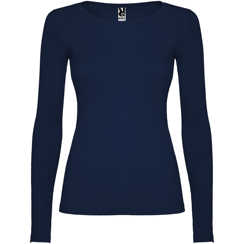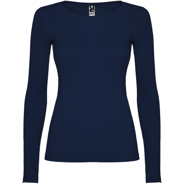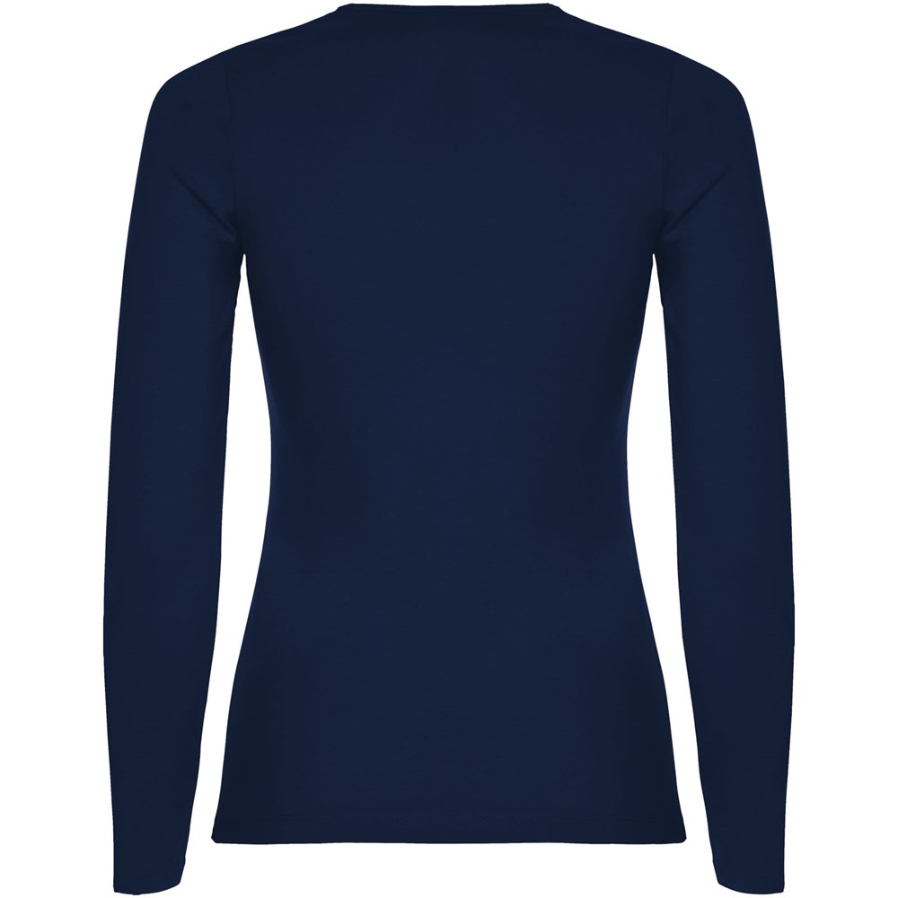 Langärmeliges, halb tailliertes T-Shirt mit feinem Halsbündchen. Keine Ärmelbündchen. Seitennähte. Herausnehmbares Etikett.