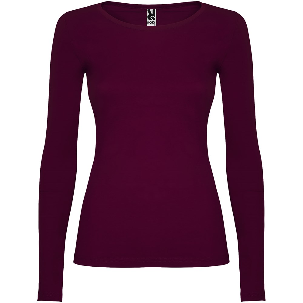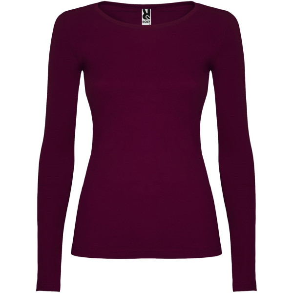 Langärmeliges, halb tailliertes T-Shirt mit feinem Halsbündchen. Keine Ärmelbündchen. Seitennähte. Herausnehmbares Etikett.