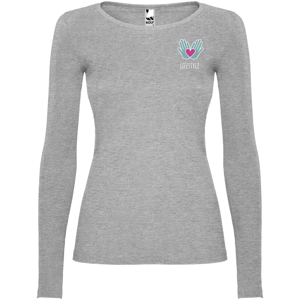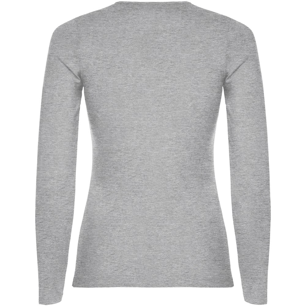 Langärmeliges, halb tailliertes T-Shirt mit feinem Halsbündchen. Keine Ärmelbündchen. Seitennähte. Herausnehmbares Etikett.