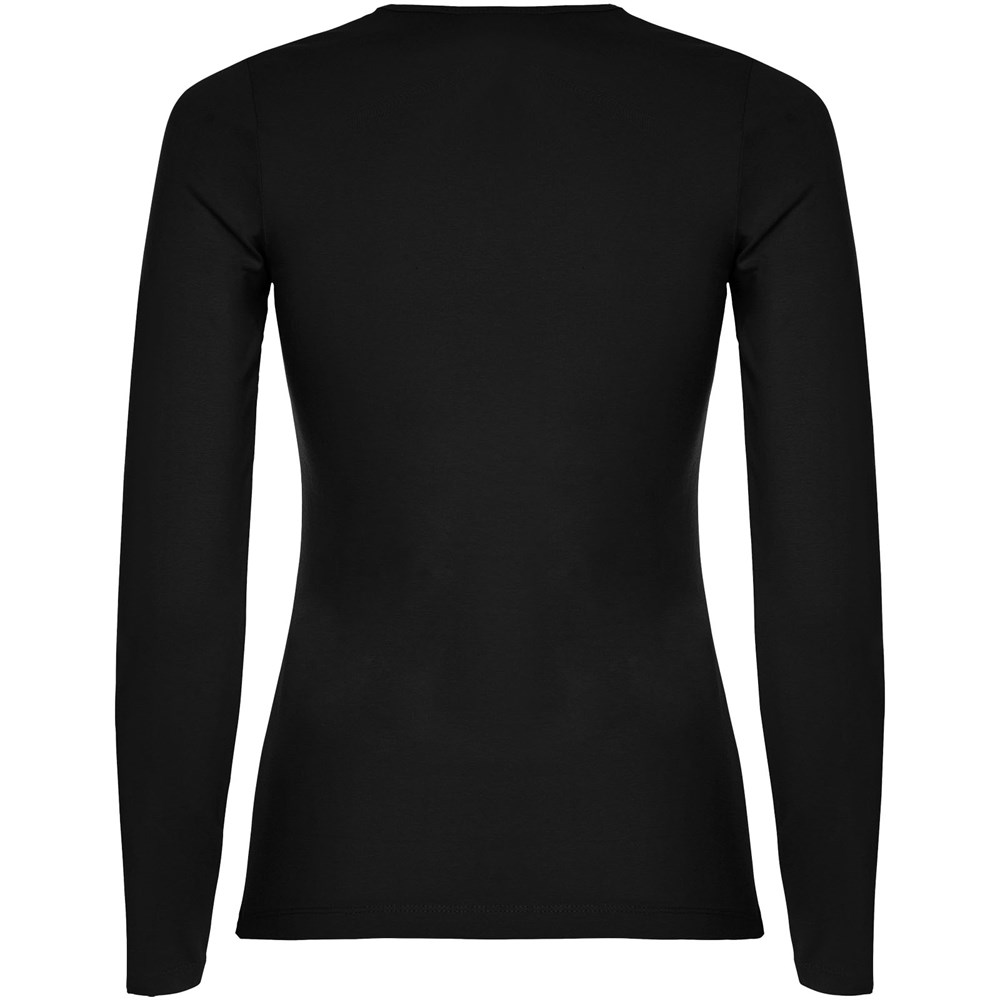 Langärmeliges, halb tailliertes T-Shirt mit feinem Halsbündchen. Keine Ärmelbündchen. Seitennähte. Herausnehmbares Etikett.