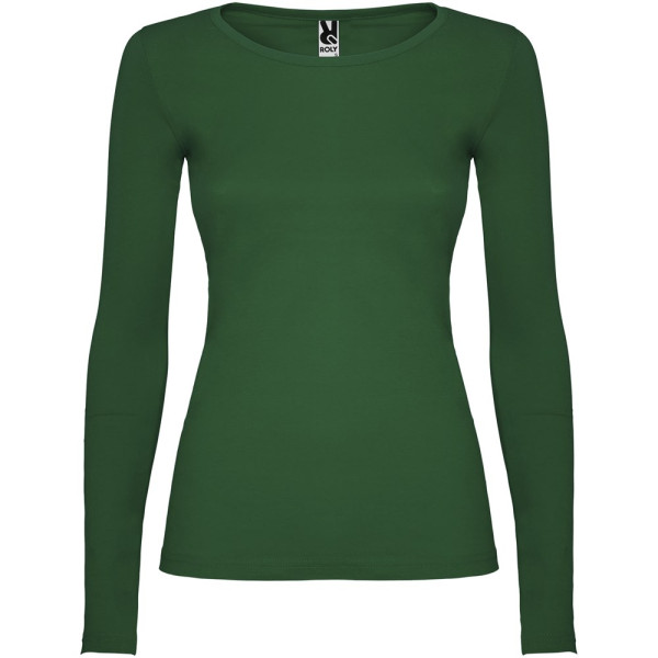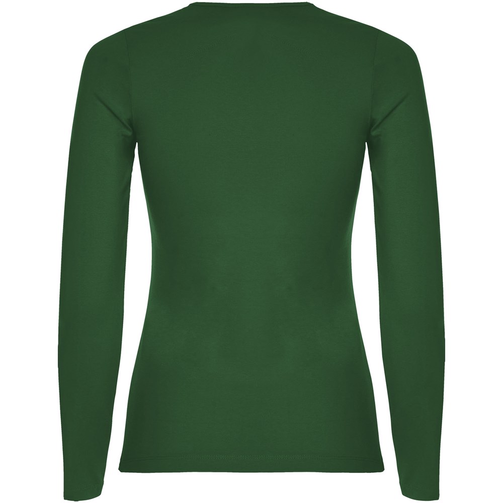Langärmeliges, halb tailliertes T-Shirt mit feinem Halsbündchen. Keine Ärmelbündchen. Seitennähte. Herausnehmbares Etikett.