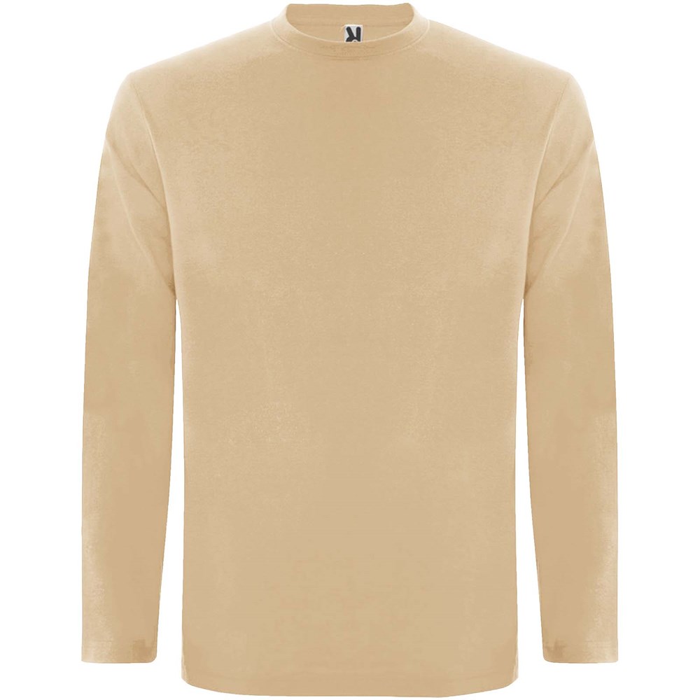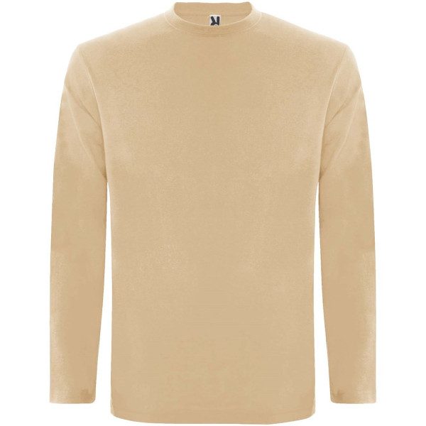 Langärmeliges Shirt aus Schlauchgewebe mit Rundhalsausschnitt aus 4 Schichten. Verstärkte Nähte an Kragen und Schultern. Keine Ärmelbündchen. Herausnehmbares Etikett. Schlauchdesign in Erwachsenengrößen und Seitennähte in Kindergrößen. Das Modell ist 185 cm groß und trägt Größe L.