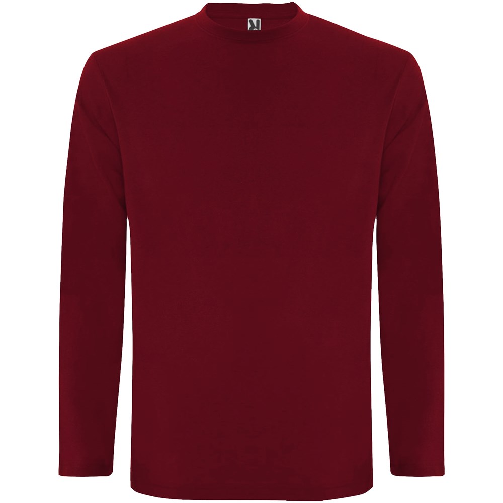 Langärmeliges Shirt aus Schlauchgewebe mit Rundhalsausschnitt aus 4 Schichten. Verstärkte Nähte an Kragen und Schultern. Keine Ärmelbündchen. Herausnehmbares Etikett. Schlauchdesign in Erwachsenengrößen und Seitennähte in Kindergrößen. Das Modell ist 185 cm groß und trägt Größe L.