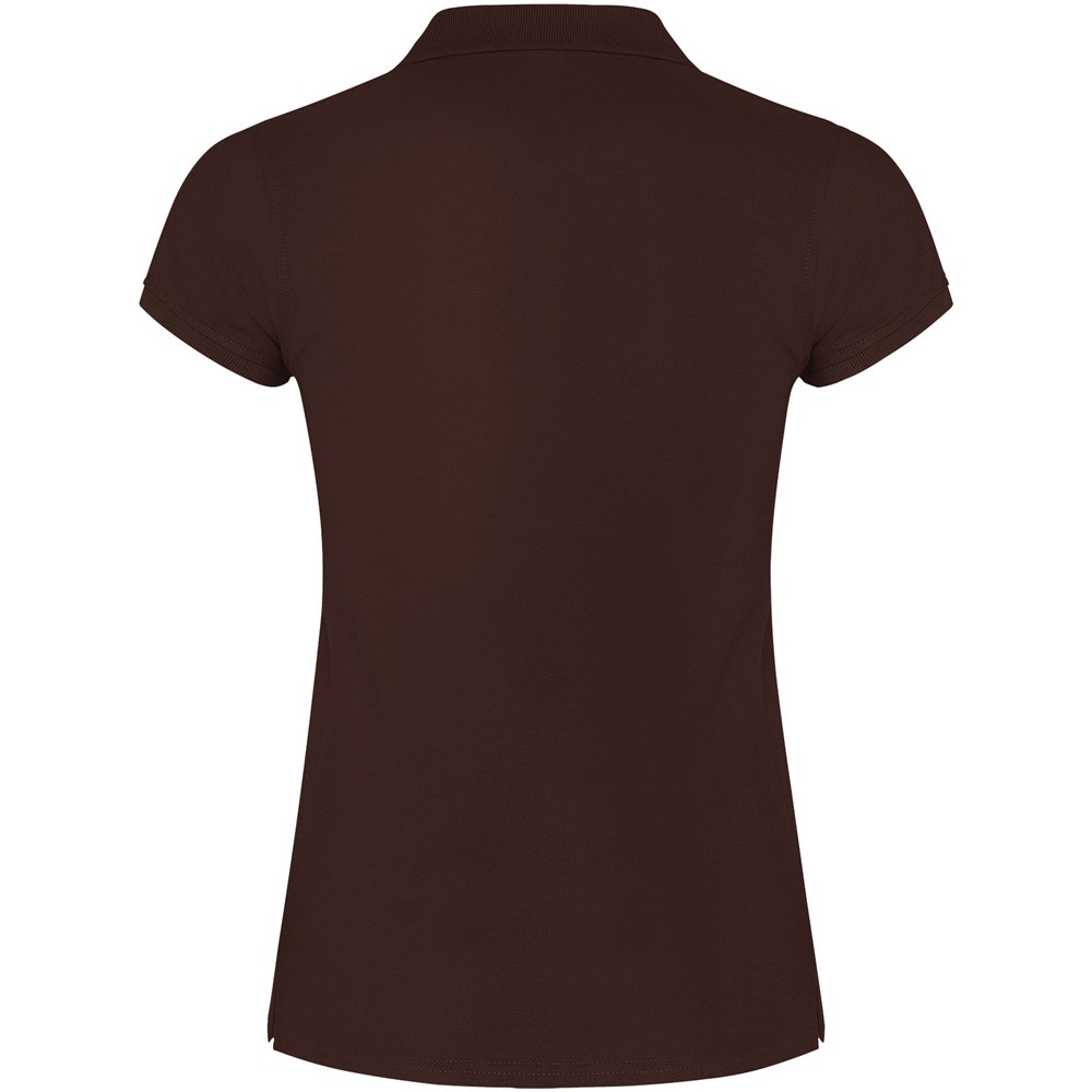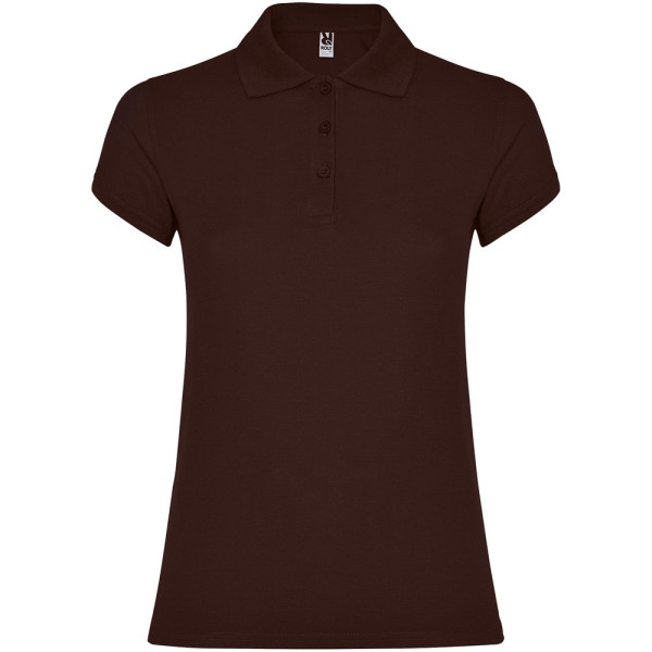 Kurzärmeliges Poloshirt für Damen. Verstärkte und verdeckte Nähte am Innenkragen. 1x1 Rippstrickbündchen an Ärmeln und Kragen. Seitennähte. 3-Knopfleiste und Seitenschlitze. Optionale Tasche. Herausnehmbares Etikett. Das Modell ist 179 cm groß und trägt Größe S.