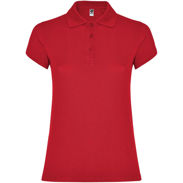 Kurzärmeliges Poloshirt für Damen. Verstärkte und verdeckte Nähte am Innenkragen. 1x1 Rippstrickbündchen an Ärmeln und Kragen. Seitennähte. 3-Knopfleiste und Seitenschlitze. Optionale Tasche. Herausnehmbares Etikett. Das Modell ist 179 cm groß und trägt Größe S.
