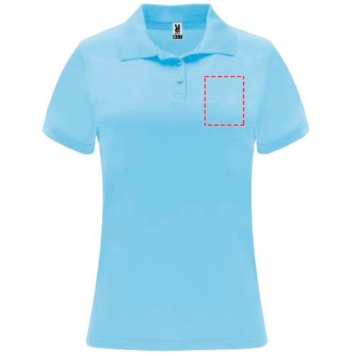 Kurzärmeliges Funktions-Poloshirt für Damen. Gestrickter Kragen mit 3-Knopfleiste. Figurbetonte Passform. Atmungsaktives, leicht zu waschendes und zu trocknendes Material. Herausnehmbares Etikett. Technisches Gewebe. Atmungsaktiver Stoff. Das Modell ist 173 cm groß und trägt Größe S.