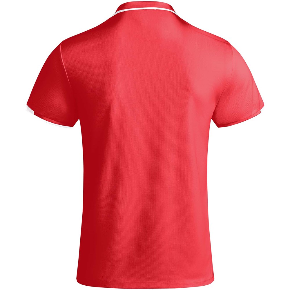 Antibakterieller Stoff aus recyceltem Polyester. 1x1-Rippstrick am Kragen und Details an den Ärmeln. Verstärkte, verdeckte Nähte am Kragen. Knopfleiste mit 2 verdeckten Druckknöpfen. Details und Schulterpartien in Kontrastfarbe. Seitenschlitze am Saum. Abnehmbares Etikett.