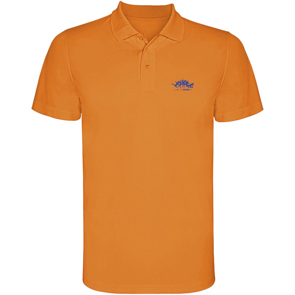 Kurzärmeliges Funktions-Poloshirt. Gestrickter Kragen mit 3-Knopfleiste. Atmungsaktives, leicht zu waschendes und zu trocknendes Material. Herausnehmbares Etikett. Technisches Gewebe. Atmungsaktiver Stoff.