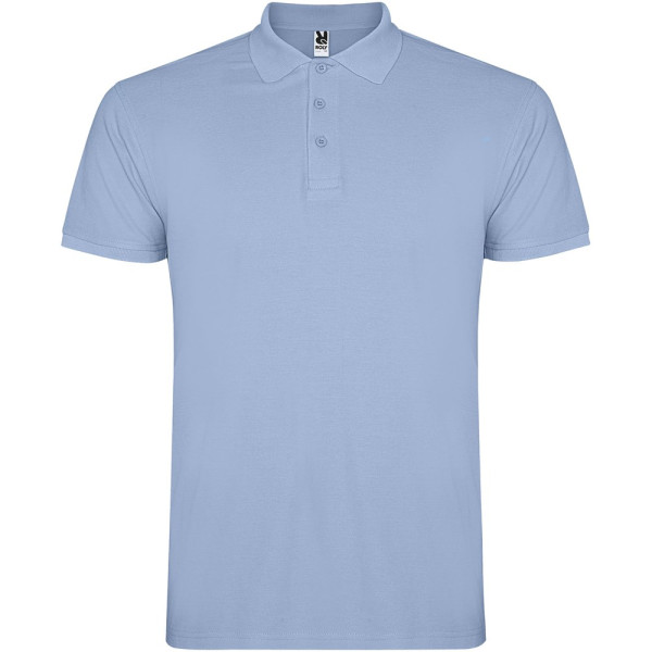 Kurzärmeliges Poloshirt für Kinder. Verstärkte und verdeckte Nähte am Innenkragen. 1x1 Rippstrickbündchen an Ärmeln und Kragen. Seitennähte. 3-Knopfleiste und Seitenschlitze. Optionale Tasche. Herausnehmbares Etikett. Das Modell ist 124 cm groß und trägt Größe 5/6.
