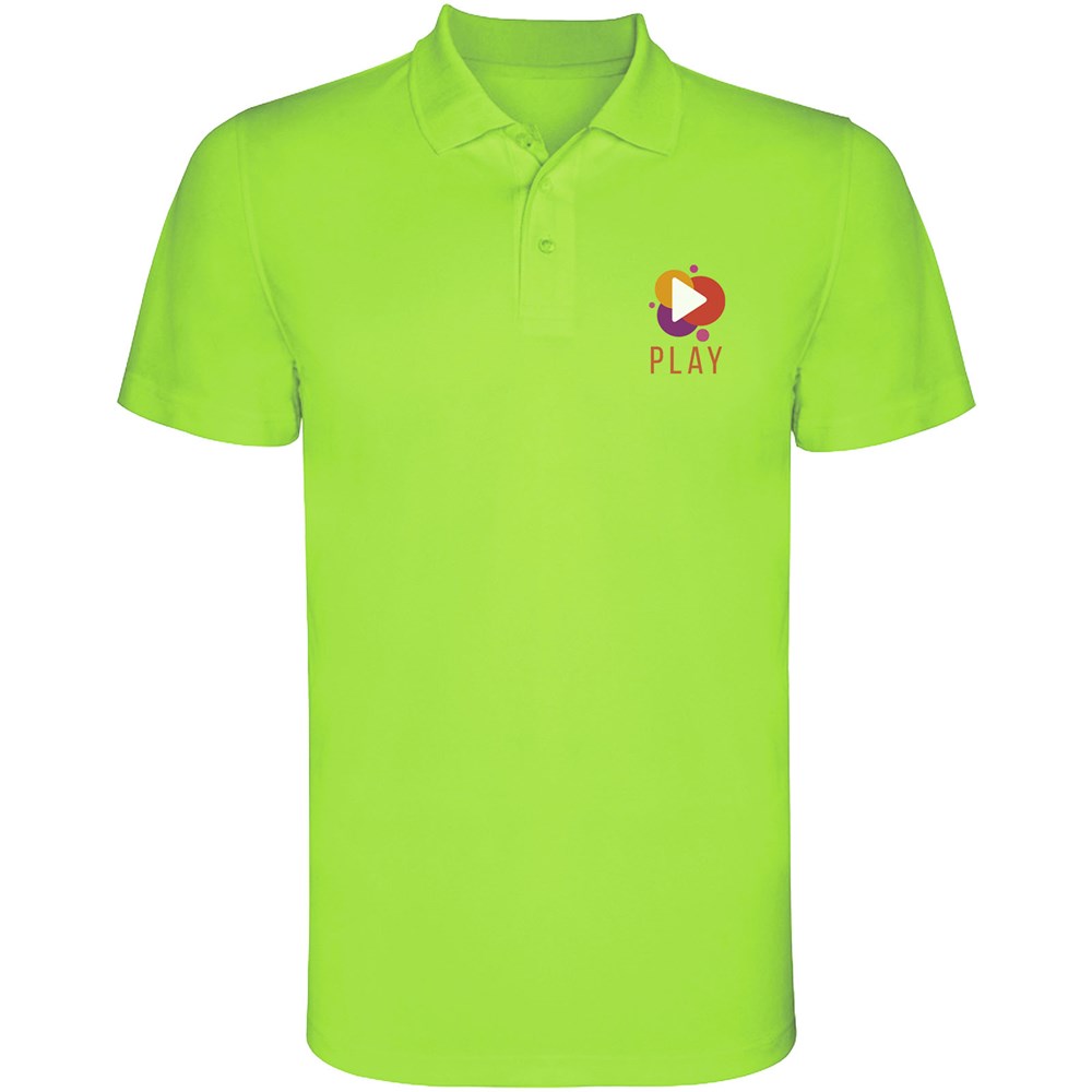 Kurzärmeliges Funktions-Poloshirt. Gestrickter Kragen mit 3-Knopfleiste. Atmungsaktives, leicht zu waschendes und zu trocknendes Material. Herausnehmbares Etikett. Technisches Gewebe. Atmungsaktiver Stoff. Das Modell ist 184 cm groß und trägt Größe L.