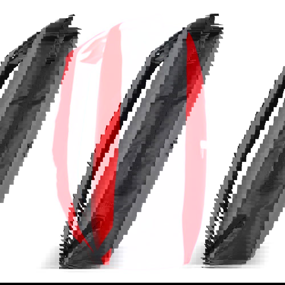 Verstellbarer, wetterfester Rucksack aus robustem Material. Das Rolltop kann auf zwei Arten geschlossen werden, was zusätzliche Flexibilität bietet. Die verschweißten Nähte halten den Inhalt trocken und die Schultergurte sind für den Komfort gepolstert.