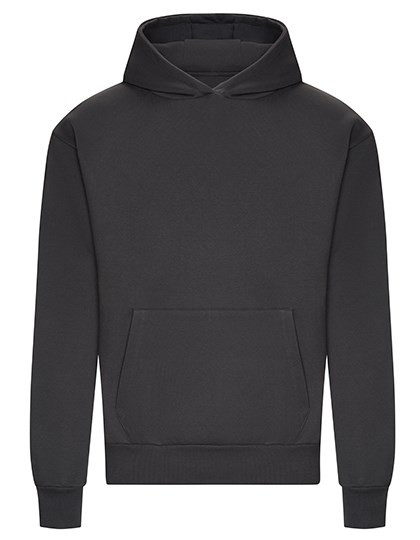 Ringgesponnene Baumwolle / recycelter Polyester | Oversize fit | Schweres Material | Doppellagige Kapuze mit drei Segmenten | Kängurutasche mit Handy-Innentasche | Keine Kordelzüge | Gerippte Ärmelabschlüsse und Saum | Gebürstetes Innenvlies | 100 % Baumwoll-Obermaterial | Abreißetikett