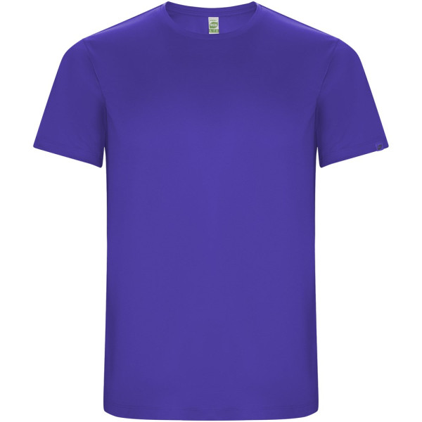 Funktions-T-Shirt aus recyceltem Polyester CONTROL DRY. Rundhalsausschnitt mit farblich abgesetzten Nähten. ECO-Logo-Etikett am Ärmel. Verpackung aus Recyclingmaterial. Herausnehmbares ECO-Etikett. Verpackung aus Recyclingmaterial. Technisches Gewebe. Das Modell ist 115 cm groß und trägt Größe 5/6.