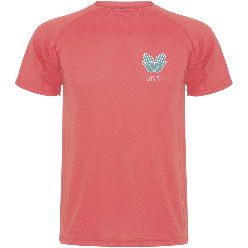Kurzärmeliges Funktions-T-Shirtmit Raglanärmeln. Rundhalsausschnitt mit verdeckten Nähten. Seitenschlitze mit passender Überwendlingsnaht. Atmungsaktiver Stoff, leicht zu waschen und zu trocknen. Herausnehmbares Etikett. Technisches Gewebe. Ultravioletter Schutzfaktor.