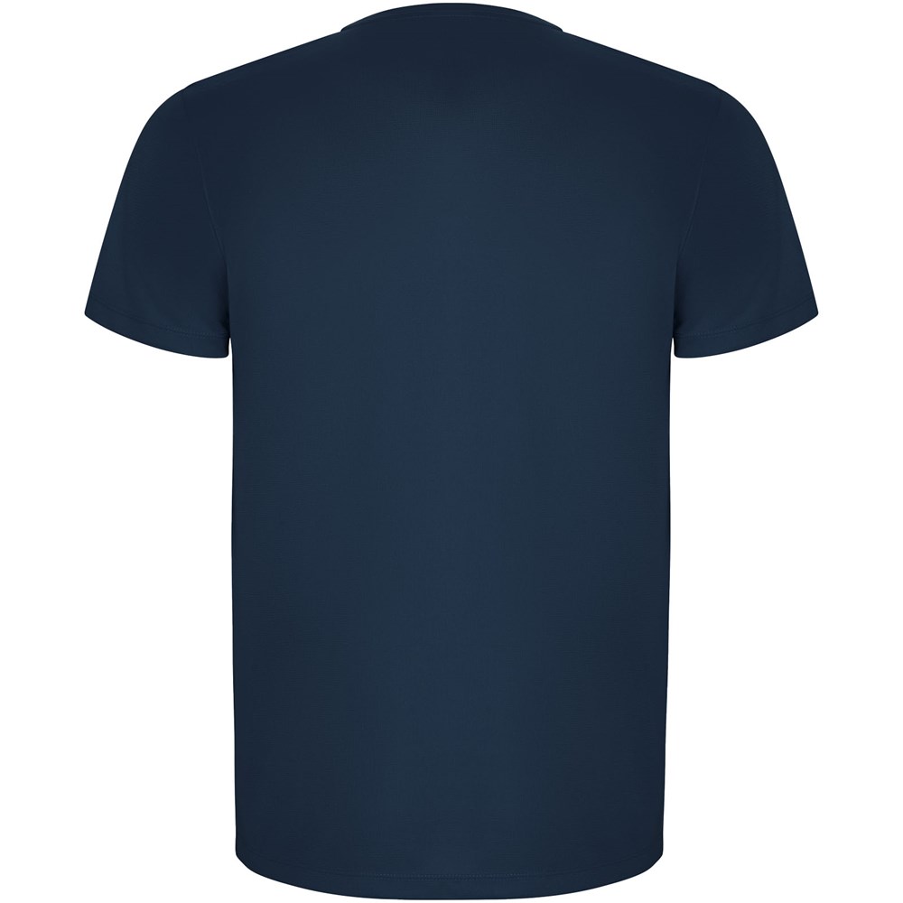 Funktions-T-Shirt aus recyceltem Polyester CONTROL DRY. Rundhalsausschnitt mit farblich abgesetzten Nähten. ECO-Logo-Etikett am Ärmel. Verpackung aus Recyclingmaterial. Herausnehmbares ECO-Etikett. Verpackung aus Recyclingmaterial. Technisches Gewebe. Das Modell ist 180 cm groß und trägt Größe M.