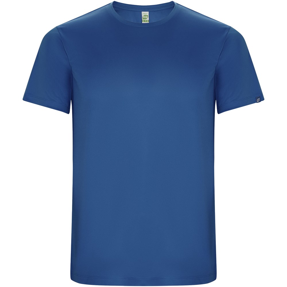 Funktions-T-Shirt aus recyceltem Polyester CONTROL DRY. Rundhalsausschnitt mit farblich abgesetzten Nähten. ECO-Logo-Etikett am Ärmel. Verpackung aus Recyclingmaterial. Herausnehmbares ECO-Etikett. Verpackung aus Recyclingmaterial. Technisches Gewebe. Das Modell ist 180 cm groß und trägt Größe M.
