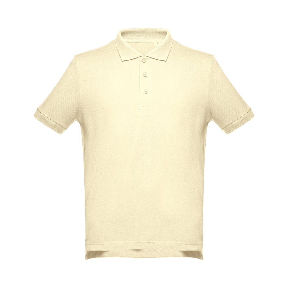 Herren Poloshirt aus Piqué Stoff 100% Baumwolle (195g/m²). Gerippter Kragen und Ärmel. Verstärkungsband am Kragen und verstärkte Knopfleiste mit 3 farblich abgestimmten Knöpfen. Unten mit seitlichen Öffnungen. Ersatzknopf an der Innennaht. Bei der Farbe 183 bestehend aus 85% Baumwolle und 15% Viskose. Größen: S, M, L, XL, XXL