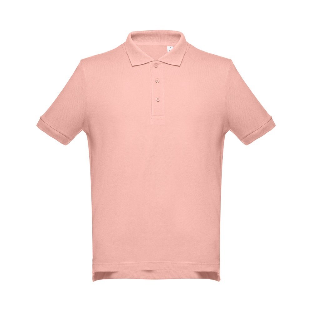 Herren Poloshirt aus Piqué Stoff 100% Baumwolle (195g/m²). Gerippter Kragen und Ärmel. Verstärkungsband am Kragen und verstärkte Knopfleiste mit 3 farblich abgestimmten Knöpfen. Unten mit seitlichen Öffnungen. Ersatzknopf an der Innennaht. Bei der Farbe 183 bestehend aus 85% Baumwolle und 15% Viskose. Größen: S, M, L, XL, XXL