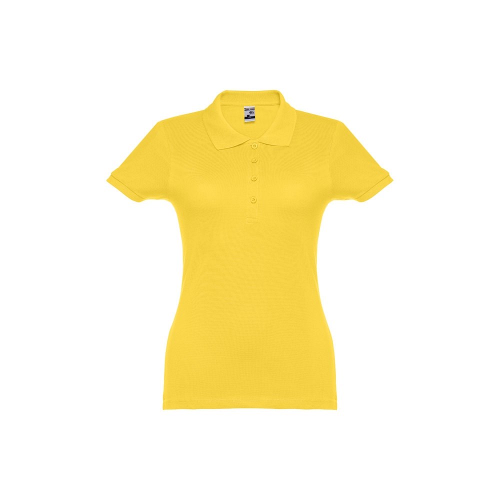 Damen Poloshirt aus Piqué Stoff 100% kardierter Baumwolle (195 g/m²), mit geripptem Kragen und Ärmel, Verstärkungsband am Kragen, verstärkte Knopfleiste mit 4 farblich abgestimmten Knöpfen und einem Ersatzknopf an der Innennaht.Bei der Farbe 183 bestehend aus 85% Baumwolle und 15% Viskose. Größen: S, M, L, XL, XXL