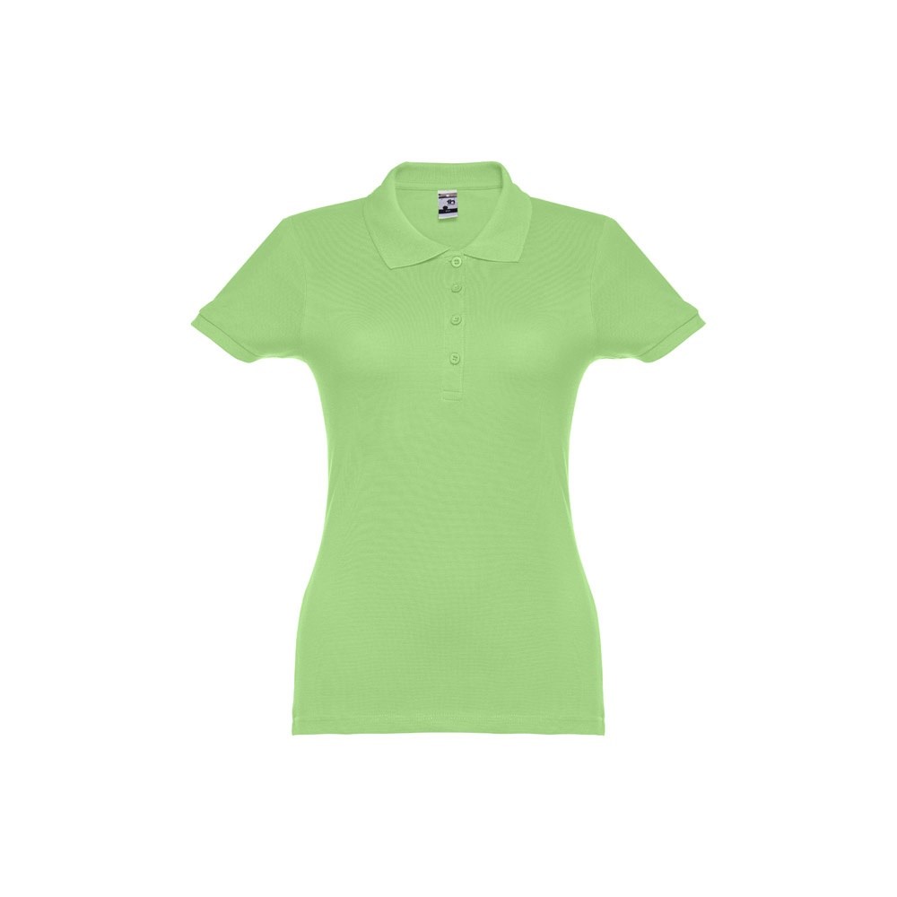 Damen Poloshirt aus Piqué Stoff 100% kardierter Baumwolle (195 g/m²), mit geripptem Kragen und Ärmel, Verstärkungsband am Kragen, verstärkte Knopfleiste mit 4 farblich abgestimmten Knöpfen und einem Ersatzknopf an der Innennaht.Bei der Farbe 183 bestehend aus 85% Baumwolle und 15% Viskose. Größen: S, M, L, XL, XXL