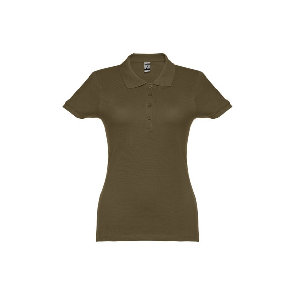 Damen Poloshirt aus Piqué Stoff 100% kardierter Baumwolle (195 g/m²), mit geripptem Kragen und Ärmel, Verstärkungsband am Kragen, verstärkte Knopfleiste mit 4 farblich abgestimmten Knöpfen und einem Ersatzknopf an der Innennaht.Bei der Farbe 183 bestehend aus 85% Baumwolle und 15% Viskose. Größen: S, M, L, XL, XXL