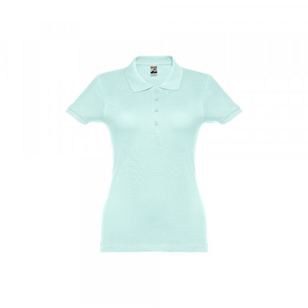 Damen Poloshirt aus Piqué Stoff 100% kardierter Baumwolle (195 g/m²), mit geripptem Kragen und Ärmel, Verstärkungsband am Kragen, verstärkte Knopfleiste mit 4 farblich abgestimmten Knöpfen und einem Ersatzknopf an der Innennaht.Bei der Farbe 183 bestehend aus 85% Baumwolle und 15% Viskose. Größen: S, M, L, XL, XXL