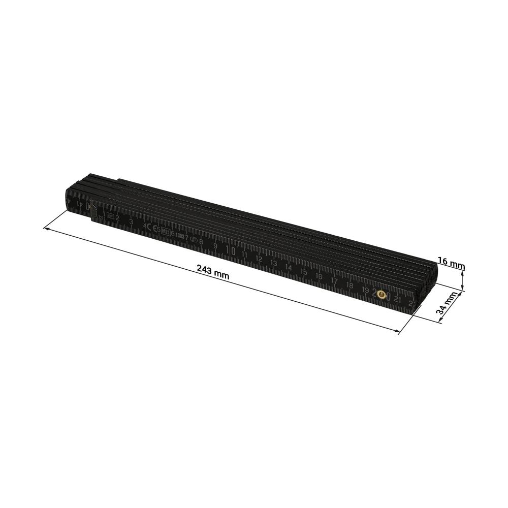 Hochwertiger Glieder-Maßstab aus Buchenholz. Hohe Qualität durch die metallenen Gelenke und die sichtbaren Nieten. Länge: 2 m.