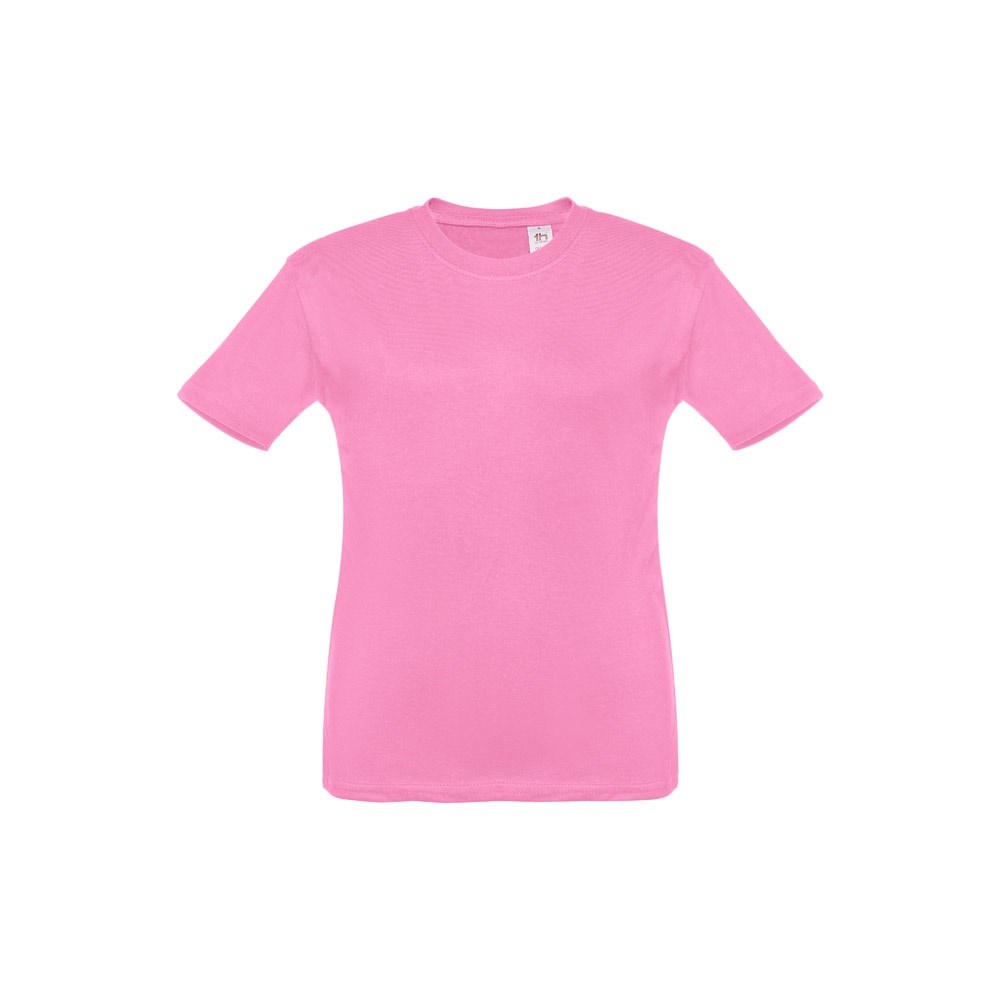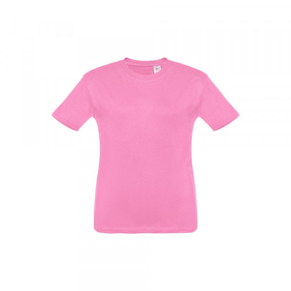 Kinder T-Shirt aus 100% Strickjersey und Baumwolle (150g/m²), unisex mit geripptem Kragen in 1x1 Ripp, Jersey-Verstärkung und Doppelnaht an den Ärmeln und Saum. Größen: 2, 4, 6, 8, 10, 12