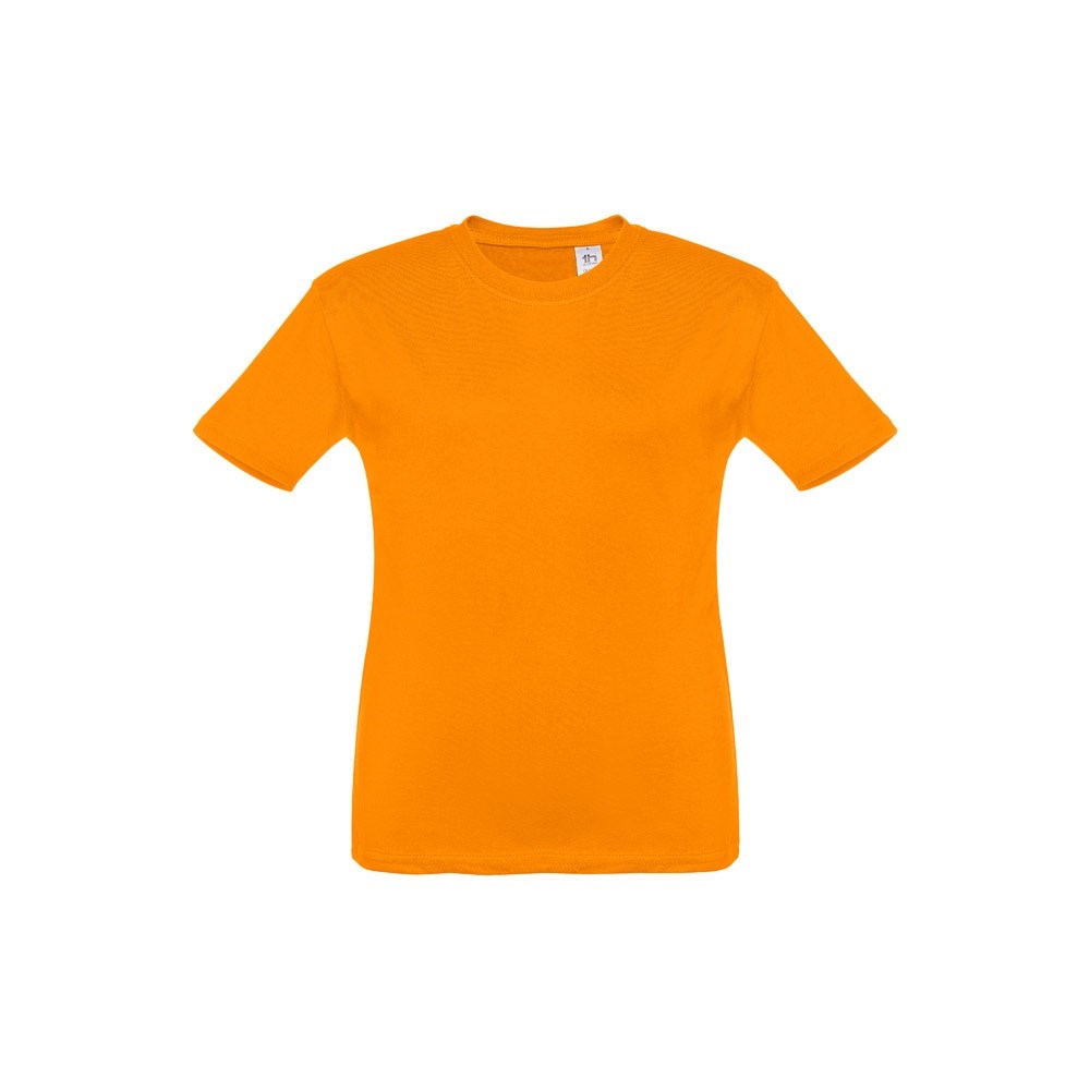 Kinder T-Shirt aus 100% Strickjersey und Baumwolle (150g/m²), unisex mit geripptem Kragen in 1x1 Ripp, Jersey-Verstärkung und Doppelnaht an den Ärmeln und Saum. Größen: 2, 4, 6, 8, 10, 12