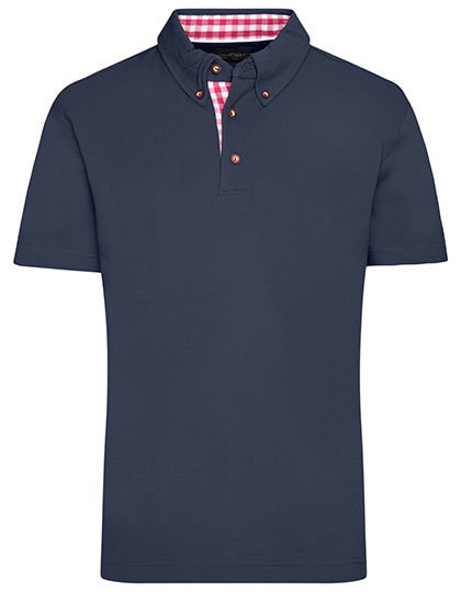 Klassisches Polo im Trachtenlook | Feine Piqué-Qualität | Gekämmte, ringgesponnene Baumwolle | Karobesatz in Kragensteg, Knopfleiste innen und Seitenschlitzen | Trachtenknöpfe aus Horn-Imitat | Halbmond Ton in Ton | Konfektionierter Button-Down-Kragen | Drei Knöpfe