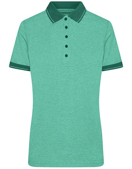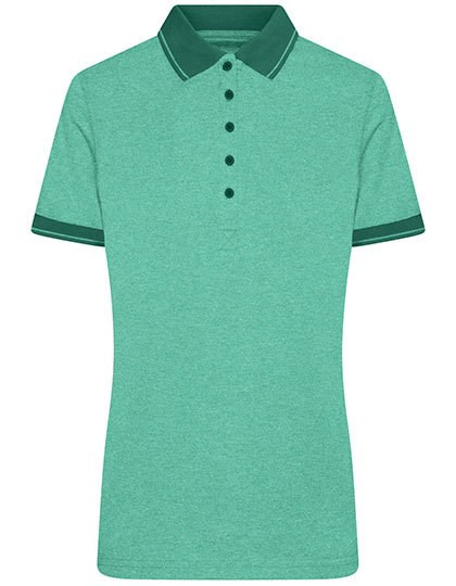 Melange-Polo mit modischen Details | Feiner Single Jersey | Lässige Schnittform | Gestrickter Polokragen und Armbündchen mit Kontraststreifen | Leicht taillliert | 5 Knöpfe