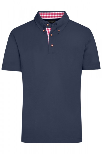 Feine Piqué-Qualität Gekämmte, ringgesponnene Baumwolle Karobesatz in Kragensteg, Knopfleiste innen und Seitenschlitzen Trachtenknöpfe aus Horn-Imitat Halbmond Ton in Ton JN716: Konfektionierter Button-Down-Kragen, 3 Knöpfe JN715: Konfektionierter Kragen, 4 Knöpfe, taillierter Schnitt 1/2 Oberweite: 48 cm 1/2 Saumweite: 48 cm Länge ab Schulter Vorderteil: 70 cm Länge ab Schulter Rückenteil: 72 cm Ärmel Länge: 23 cm OEKO-TEX® Standard 100 (15.0.70467) kurz Baumwolle