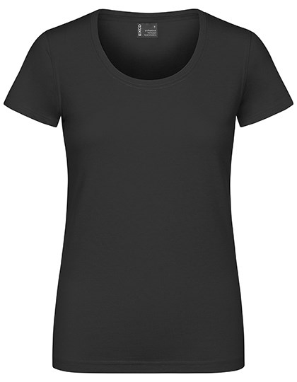 Mischware | Single Jersey | Seitennähte | Schlaufen in der Seitennaht innen | Femininer Ausschnitt | Elasthananteil im schmalen Ripp-Bündchen | Langstapelige Baumwolle und Polyester mit der VORTEX® Spinning Technology | Extrem glatte Oberfläche | Pillingresistent | Verstärkte Schulter- und Doppelnähte | Necktape | Minimale Einlaufwerte | Bügelleicht | Standard ISO 15797 (Industrielles Wasch- und Finishverfahren)