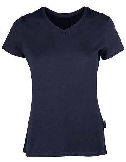 Ringgesponnene, gekämmte Bio-Baumwolle | Single Jersey | V-Ausschnitt | Modischer, körperbetonter Schnitt (leicht tailliert) | Seitennähte | Schulter-zu-Schulter Nackenband, verstärkt durch Doppelnähte | Ohne Label | Gewebtes Fair4All Flaglabel in der linken Seitennaht | Waschbar bis 60 °C und für Industriewäsche geeignet | Einlaufvorbehandelt und Antipilling | BSCI zertifizierte Produktion