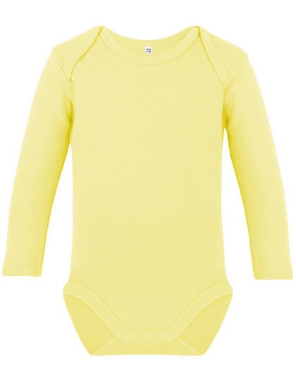 Seitennähte | Langarm-Body mit Schlupfkragen | Schmal eingefasster Hals- und Armausschnitt | Sehr gute Interlock-Qualität | Unbedruckt waschbar bis 60 °C | Weiche und elastische Interlock-Verarbeitung | Body mit drei nickelfreien Qualitäts-Druckknöpfen (YKK) in gleicher Farbe | Kein Markenetikett im Nacken | Gekämmte Bio-Baumwolle und soziale Standards, Interlock