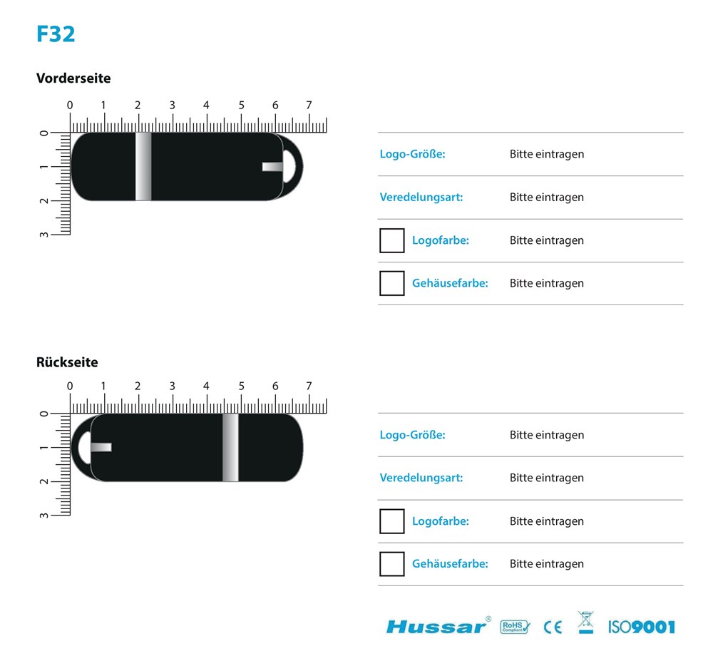 Technische Details: Speicherqualität: Verwendung von Markenspeicher z.B. folgender Hersteller: Samsung, Toshiba, Hynix, Micron, SanDisk USB-Richtgeschwindigkeit 2.0: 1GB - 64GB = Lesen: ca. 10MB/Sek. und Schreiben: ca. 3MB/Sek. Schnellere Lese und Schreibgeschwindigkeiten sind auf Anfrage erhältlich USB-Richtgeschwindigkeit 3.0: 8GB = Lesen: ca. 20MB/Sek. und Schreiben: ca. 10MB/Sek. 16GB = Lesen: ca. 20MB/Sek. und Schreiben: ca. 10MB/Sek. 32GB = Lesen: ca. 50MB/Sek. und Schreiben: ca. 12MB/Sek. 64GB = Lesen: ca. 60MB/Sek. und Schreiben: ca. 12MB/Sek. 128GB = Lesen: ca. 70MB/Sek. und Schreiben: ca. 18MB/Sek. Schnellere Lese und Schreibgeschwindigkeiten sind auf Anfrage erhältlich