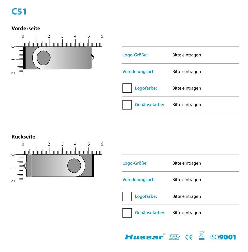 Technische Details: Speicherqualität: Verwendung von Markenspeicher z.B. folgender Hersteller: Samsung, Toshiba, Hynix, Micron, SanDisk USB-Richtgeschwindigkeit 2.0: 1GB - 64GB = Lesen: ca. 10MB/Sek. und Schreiben: ca. 3MB/Sek. Schnellere Lese und Schreibgeschwindigkeiten sind auf Anfrage erhältlich USB-Richtgeschwindigkeit 3.0: 8GB = Lesen: ca. 20MB/Sek. und Schreiben: ca. 10MB/Sek. 16GB = Lesen: ca. 20MB/Sek. und Schreiben: ca. 10MB/Sek. 32GB = Lesen: ca. 50MB/Sek. und Schreiben: ca. 12MB/Sek. 64GB = Lesen: ca. 60MB/Sek. und Schreiben: ca. 12MB/Sek. 128GB = Lesen: ca. 70MB/Sek. und Schreiben: ca. 18MB/Sek. Schnellere Lese und Schreibgeschwindigkeiten sind auf Anfrage erhältlich
